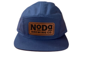 Our newest 5-panel camp hat. It features a faux leather patch with our logo on the front panel and a plastic buckle.